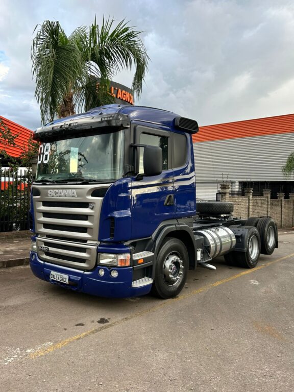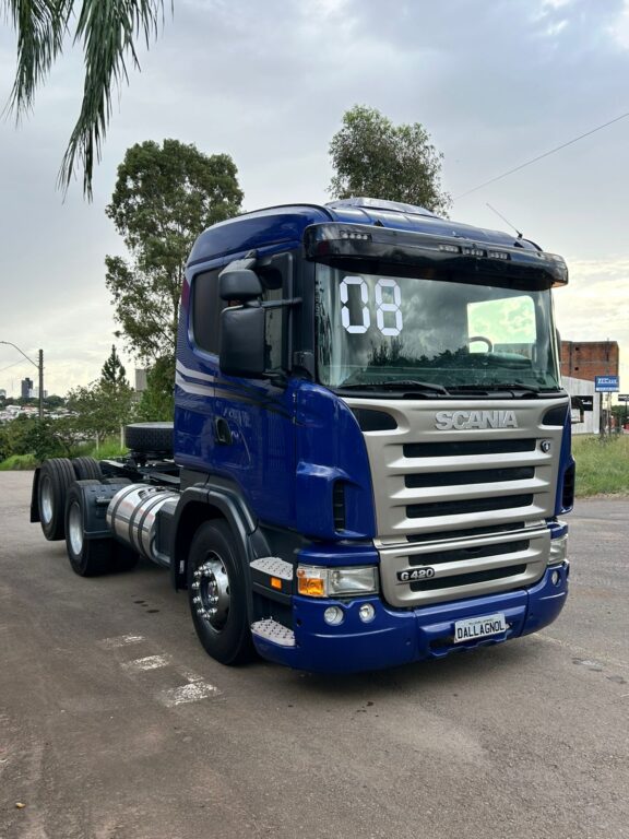 Modelo: SCANIA G420 6X2 2008 Ano: 2008 Tração: 6X2 Cor: Azul Link: https://www.dallagnol.com.br/estoque/scania-g420-6x2-2008/